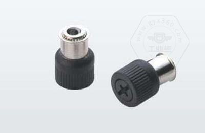手紧螺钉的压铆套具有压花齿,压装于于机箱或薄钣孔内(注:薄板的钻孔径相对应弹簧螺钉的压齿径有一定要求的,形成一个外露的弹簧螺钉,用手拧另一端(即手拧端).因其里面固定有弹簧,螺钉相对于薄板的另一端来回进出。