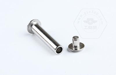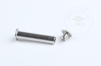 安装时尾部空心部分受挤压向外翻边,形成卡扣,固定连接件。 扁圆头半空心铆钉主要用于金属薄板或皮革、帆布、木料等非金属材料的铆接场合。